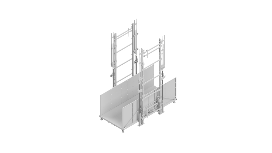 The hydraulic lift UN_904 with 2 masts and 2 hydraulic cylinders per mast is the ideal solution for transporting bulky loads up to 6000 kg, even in long travel distances.