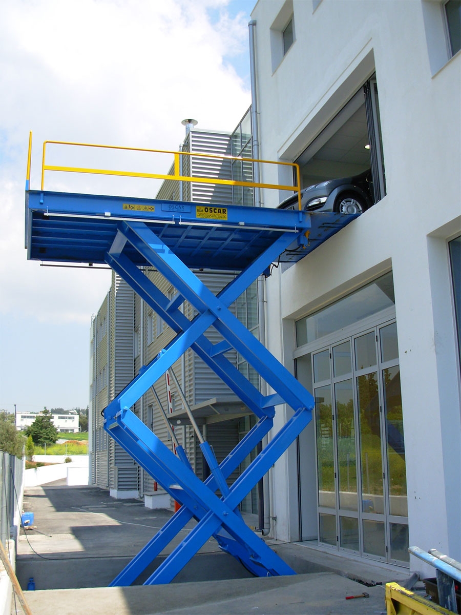 The scissor platform UN_875 is the ideal solution for vertical transportation of vehicles across one or multiple levels, suitable for both indoor and outdoor installations.